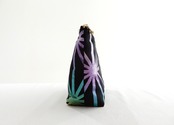 再生ポリエステルの金襴を使用した、マチありポーチです。この金襴はHIRUMEではスカジャンにも使用しています。スカジャンを製作した時に出る端材を無駄にしないように活かして、1点ずつ手作りしています。両面の色がレインボーのグラデーションになっております。
